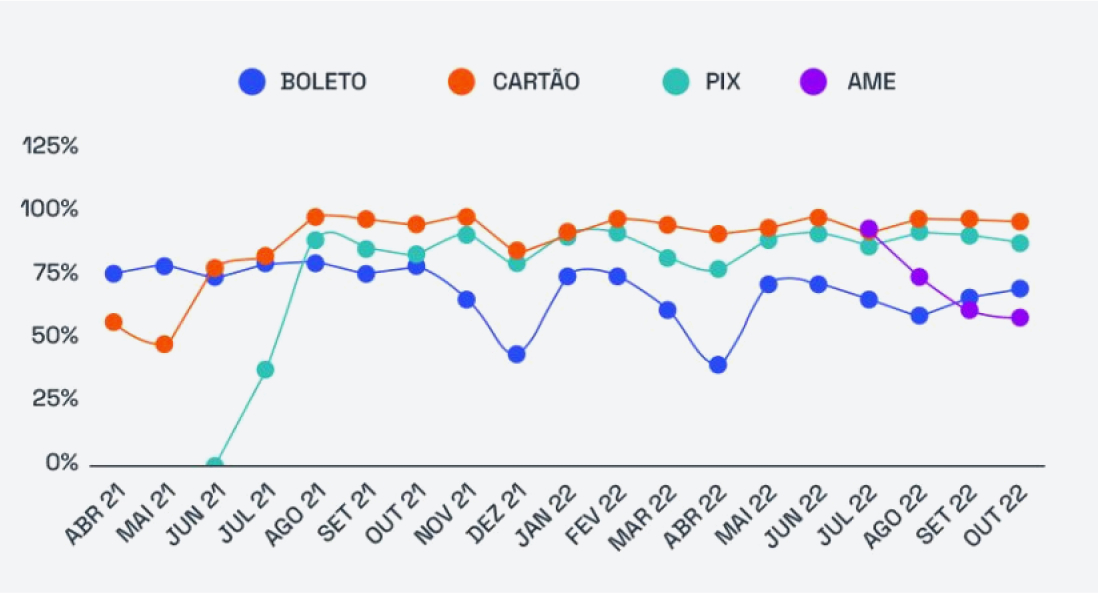 Growth A partir do ciclo de Growth realizado em Julho/22, gerou uma série de insights em relação ao funil de vendas da Rope Store, que resultou em: Foco no PIX! A preferência silenciosa pela opção de pagamento deu espaço para ações de incentivo, estabelecendo o PIX como a segunda principal forma de pagamento: