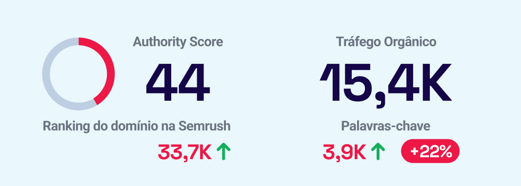SEO: Por meio da análise técnica do SEO do site, foram realizadas uma série de otimizações on e off page além da recuperação e otimização de palavras-chave. Em 2 meses, foram mais de 22% de aumento no tráfego orgânico.