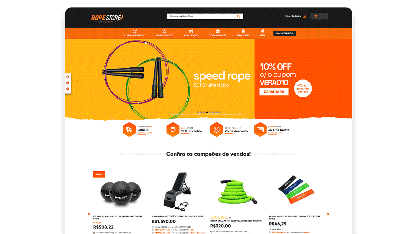 A Rope Store é uma empresa especializada em equipamentos para treinamento funcional e cross training. A marca oferece produtos para musculação e condicionamento físico, com foco em qualidade e inovação.