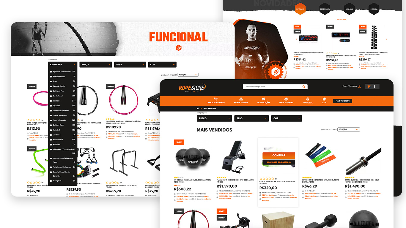 Tecnologia Implementação da plataforma de e-commerce da empresa, trazendo robustez à operação com tecnologia de ponta e suporte no processo de implantação.A plataforma escolhida para a nova fase da Rope Store foi o Adobe Commerce, ainda conhecido como Magento. A nova loja conta com estratégias para: - Combater falhas de carregamento; - Otimizar a experiência de compra do cliente; - Facilidade e opções de checkout;